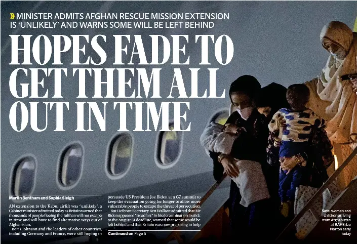 AN extension to the Kabul airlift was “unlikely”, a Cabinet minister admitted today as Britain warned that thousands of people fleeing the Taliban will not escape in time and will have to find alternative ways out of Afghanistan. Boris Johnson and the leaders of other countries, including Germany and France, were still hoping to persuade US President Joe Biden at a G7 summit to keep the evacuation going for longer to allow more vulnerable people to escape the threat of persecution. But Defence Secretary Ben Wallace admitted that Mr Biden appeared “steadfast” in his determination to stick to the August 31 deadline, warned that some would be left behind and that Britain was now preparing to help them make their way to safety via other routes. He said one option would be for refugees to cross into neighbouring countries and that British embassy staffing in the region would be increased to speed up applications from those wanting sanctuary here. He said Britain and its allies would also be telling the Taliban to allow refugees to leave on future civilian flights once Kabul airport reopens for normal commercial business after Western forces leave. He added that the victorious insurgents would need “money, international recognition and open borders” to run Afghanistan successfully and that “those three things should motivate them to recognise that putting these people under threat is not in their best interests”. The developments came as: Mr Wallace warned of the risk of a “stampede” at Kabul airport as people tried to scramble for places on the remaining military flights. Concern mounted about a possible Islamic State attack on troops and civilians massed at the airport as the deadline approaches. French foreign minister Jean-Yves Le Drian said his country also wanted “additional time” to get vulnerable people out of Kabul. Mr Wallace said that military chiefs were trying to “squeeze” the time needed for troops to depart to give extra hours to fly civilians to safety. The minister insisted that Britain’s “no fly” list was working despite an Afghan on it being flown to the UK. The main focus of attention today, however, was on the video summit of G7 nations at which Boris Johnson and other leaders were pressing Mr Biden for a short extension of the Kabul airlift. Mr Wallace said “the British Government position is we want to stay longer, if it is possible” but cautioned in the wake of a phone conversation last night between Mr Johnson and Mr Biden that it appeared “unlikely” that the Americans would agree to stay beyond August 31. “I think it is unlikely, not only because of what the Taliban have said but also if you look at the public statements of President Biden I think it is unlikely,” said Mr Wallace. “Everyone knows that the rest of the international community wishes to have more time. I wish we had more time. Every day we get after that is a big bonus.” He continued: “We are planning on August 31 as the leave date of the US. That means that the UK would have to leave before that and the evacuation of refugees and entitled personnel and British passport holders, and all the other people I’ve talked about would have to be before that. We don’t have the luxury of days and weeks, we have literally hours. Our focus is to get as many people out. But the scale of the challenge means that not everyone will get out. We are ruthlessly prioritising people.” Mr Wallace said that although Britain had flown 8,600 people out of Kabul since August 14, including more than 2,000 in the past 24 hours, there were still 15,000 people around the airport with 3,000 queueing at the gate. Meanwhile, in Washington, White House national security adviser Jake Sullivan said the US was in daily talks with the Taliban and making “enormous progress” in evacuating Americans and others. He added that some 10,900 people had been evacuated from Kabul yesterday and that in total the US had assisted in allowing 48,000 people to flee since August 14. A Briton working on the ground in Kabul told the Standard of the race against time. Gemma Paolucci, from Lancashire, who has worked for the UK Government in Afghanistan for the last six years, said: “The main priority is making sure every flight is full, so we can get as many people out as we possibly can. “It’s a really difficult situation outside the airport — people are scared, desperate and exhausted, families are getting separated. Everything about this is going to stay with me, seeing people at their most desperate stays with you.”